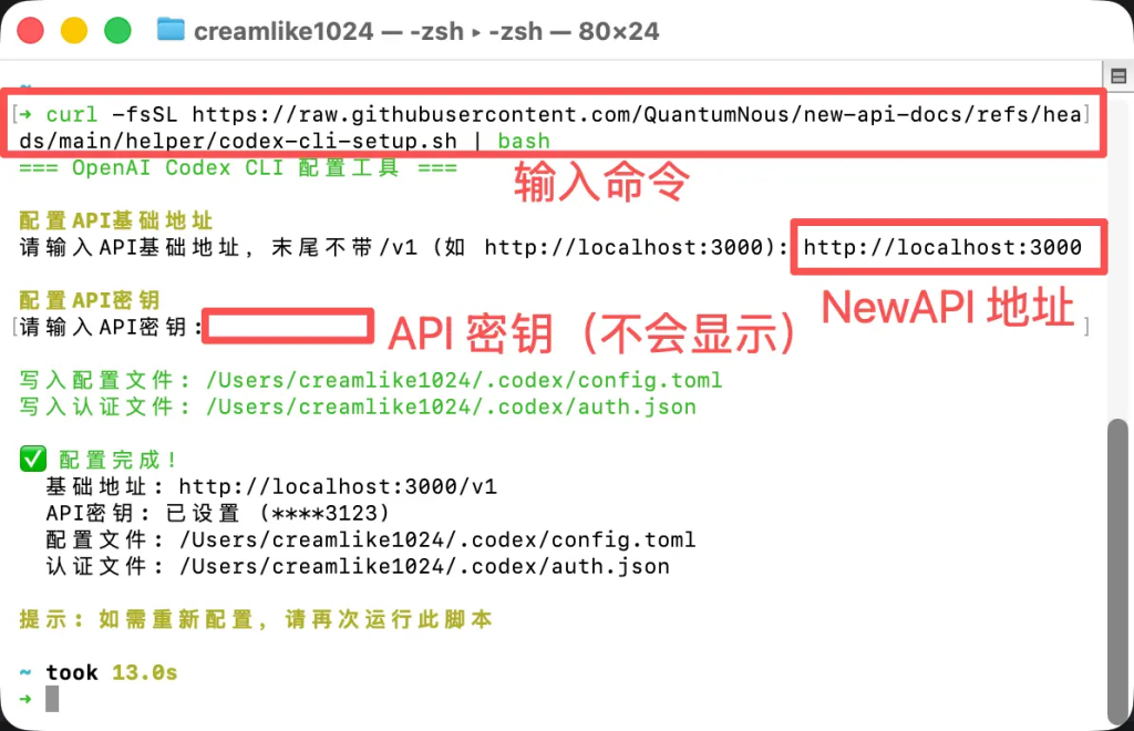 curl -fsSL https://raw.githubusercontent.com/QuantumNous/new-api-docs/refs/heads/main/helper/codex-cli-setup.sh | bash