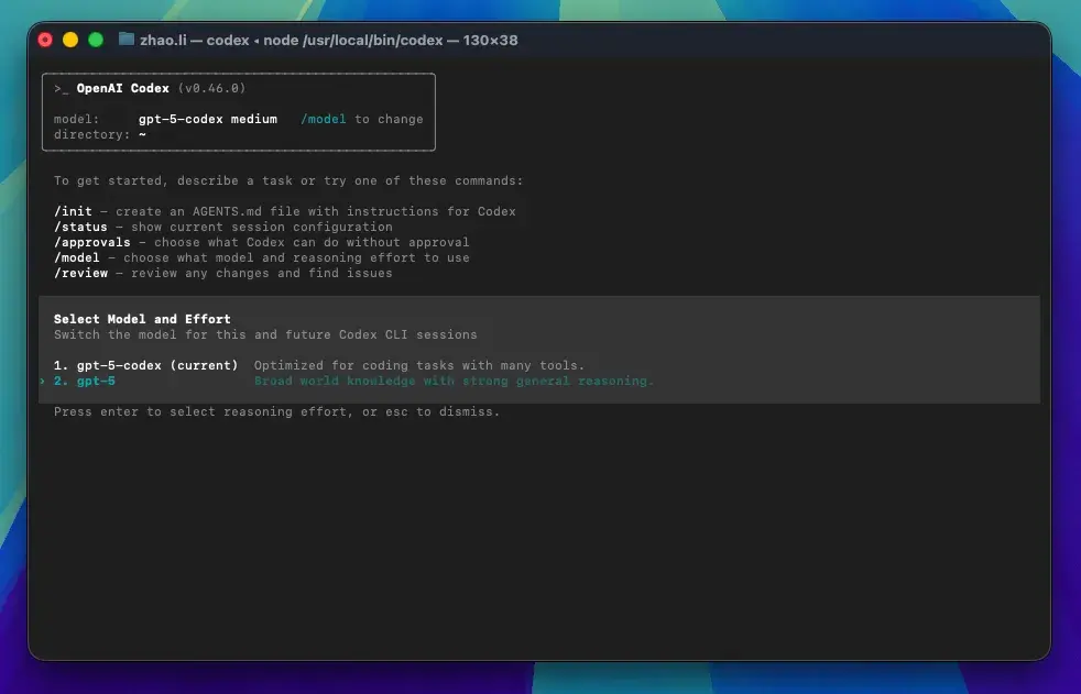 直接启动 Codex CLI:codex在特定项目中使用:
