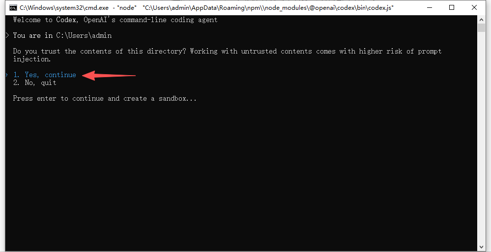 6.已经调用codex成功 后续无脑按1或者Y下一步就可以