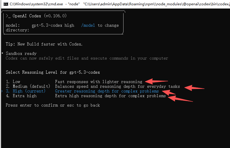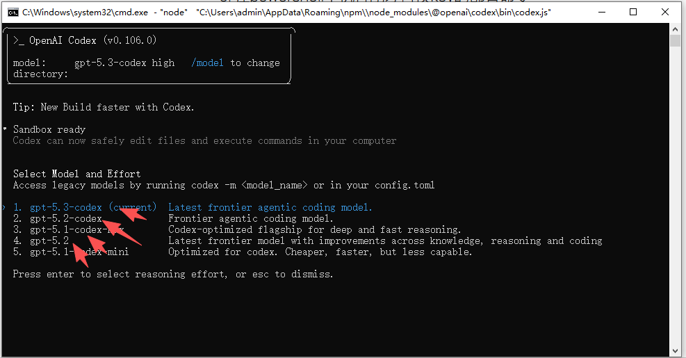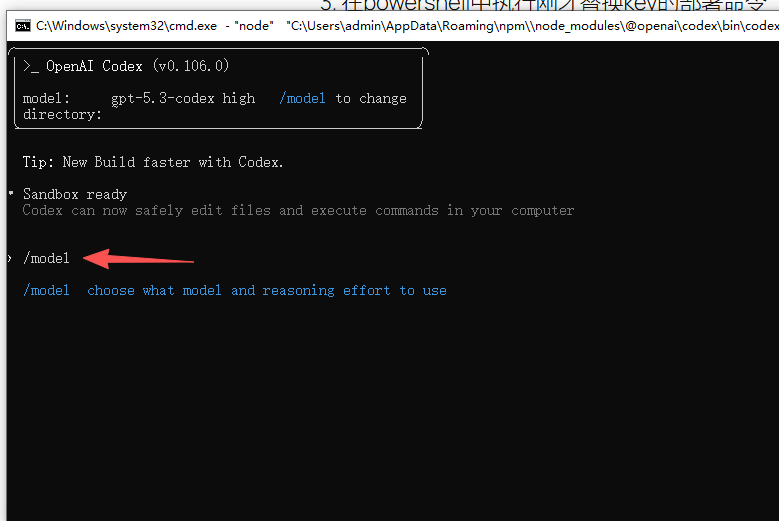 调用codex之后输入/model然后回车 然后再选自己想要的模型 上下键 选好了直接回车